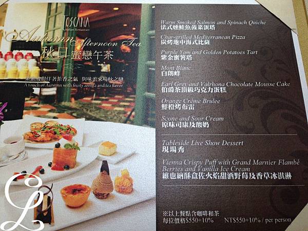 訂位專線:(02)2718-1188轉TOSCANA義大利餐廳